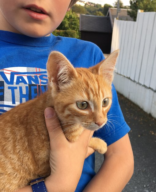 Liten og tynn, sikkert bare noen mnd gammel. Veldig tam og trygg.