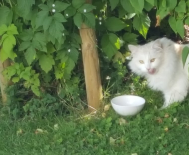 Denne katten har holdt til hos oss i lengre tid. Er veldig sulten. Sniker seg inn til oss hvis veranda døra er åpen.