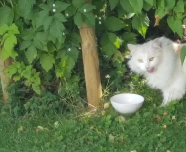 Denne katten har holdt til hos oss i lengre tid. Den går inn å spiser maten til katten vår så fort den har mulighet. Er veldig sulten. Har merket 13 i øret.