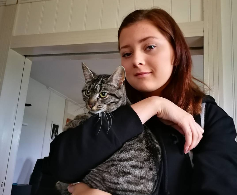 Åpnet døra og der står hu❤️😍jeg var sikker på at hun var blitt påkjørt. Ettersom jeg hørte om en katt i nærheten som lignet i beskrivelsen ,som var blitt påkjørt. Så vi gråt og var så lei oss 🤣så ble litt sjokkert når pus sto der😂men hun var redd,så er litt bekymret . Håper ingen har vært slem med henne 🤔