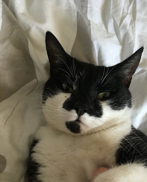 Sort og hvit kortpelset hankatt. Sunn og sprek.