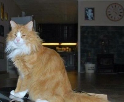 Oransje og hvit langhåret hannkatt ca. 6 kilo tung da han forsvant.