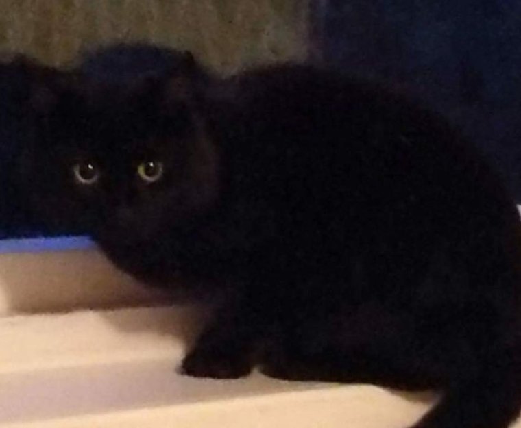 Ebony forsvant ved et uhell ut et åpent vindu. Dette var første dag i fosterhjemmet, og han er derfor ikke kjent i området. Han er sky for mennesker, derfor er det best å kontakte Dyrevernlaget Indre Sogn umiddelbart dersom han blir observert, slik at det kan settes opp en kattefelle for å få han i hus.