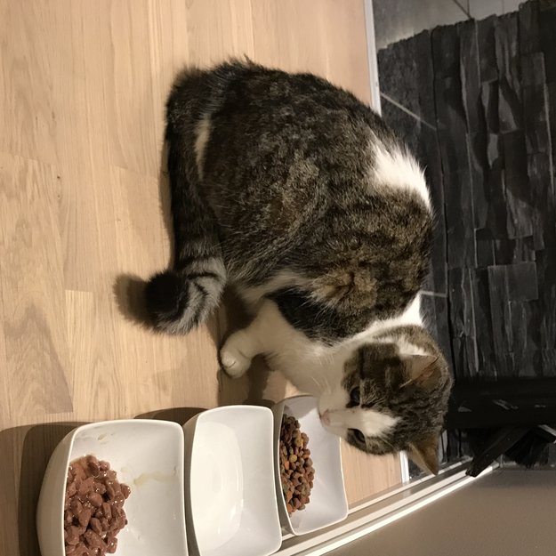 Buddy er en chippet og kastrert hannkatt. Kan være litt sky mot fremmede og høye lyder. Er veldig lett å lokke til seg med mat.