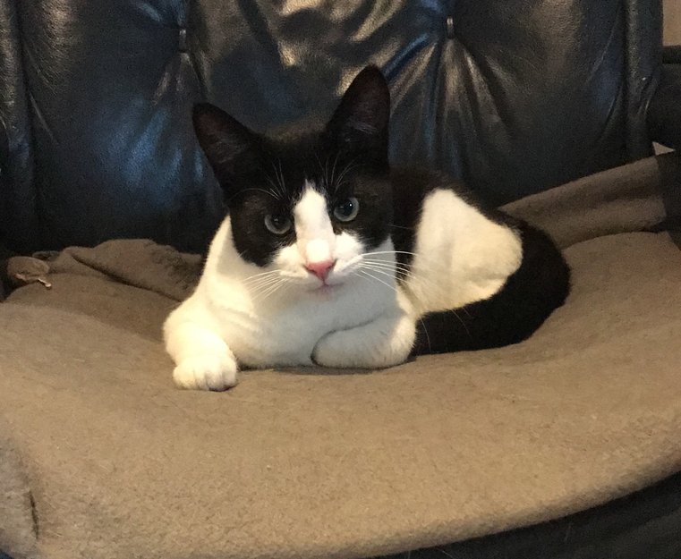 Liten slank hannkat som er Hvit og svart, går under navnet Felix.