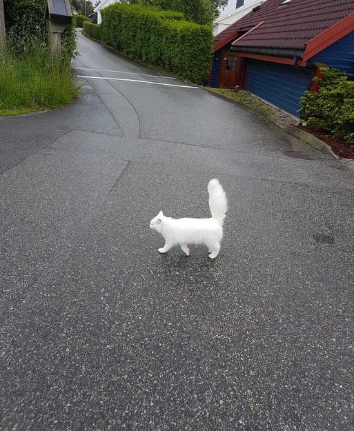 Hvit, langhåret, gule øyner, over normalt kosete!!!