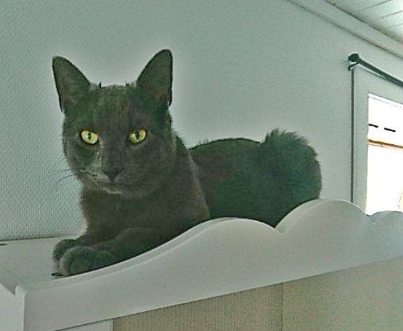 Helt grå, gulgrønne øyne, 2 år og 3,8 kilo.