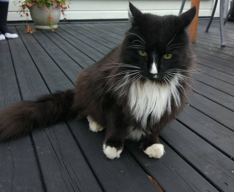 Svart m hvit bryst katt ble funnet i Gjøvik