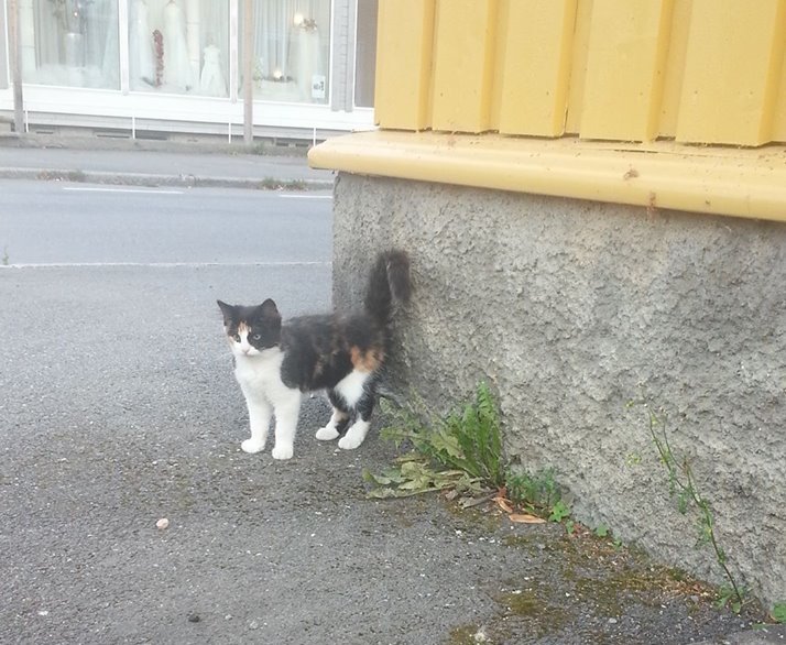 Svart, hvit, orange katt ble funnet i Steinkjer