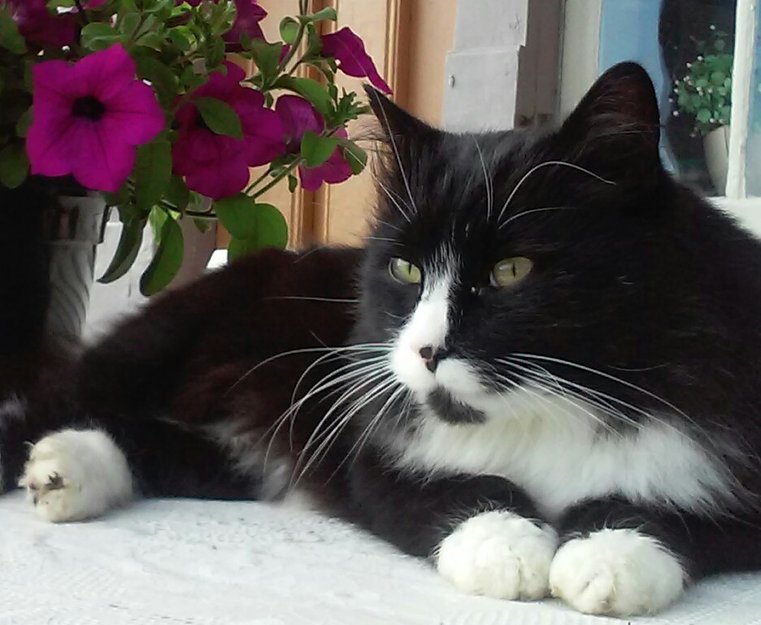 Sort prikk på nesen og et lite hakk i v. øre. Har ID merke i øret. Er chipa.