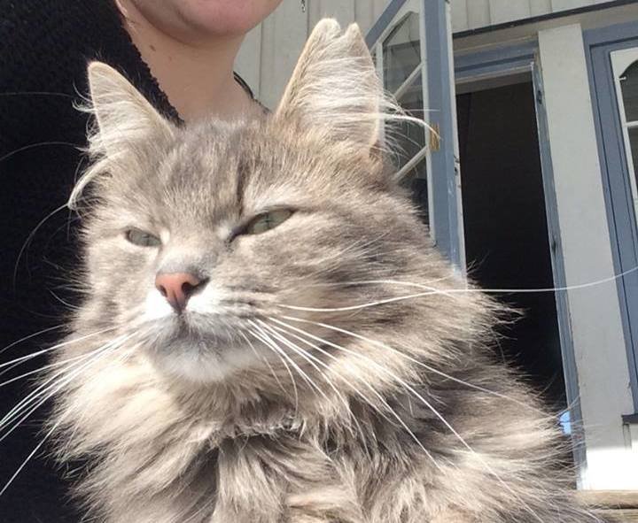 Stella er langhåret svak gråstripet. Hun er lett å kjenne igjen da hun har et lite rift i det ene øret sitt.