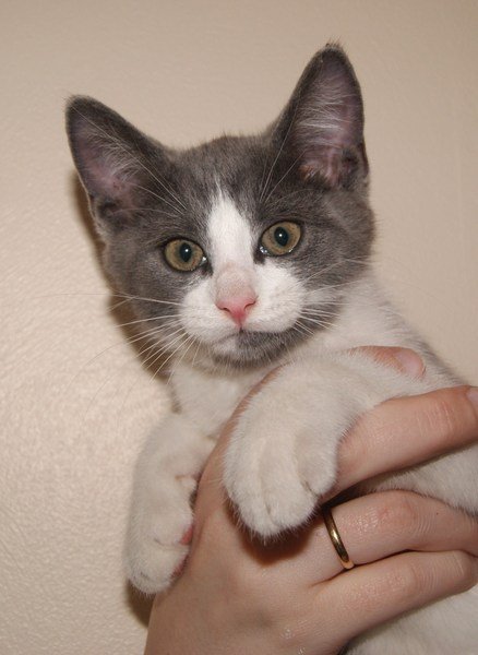 Veldig kosen hannkatt funnet. grå og hvit, ingen halsbånd.