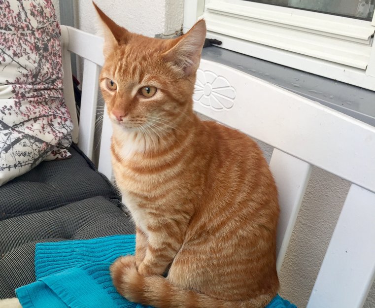 Ung hann katt. Den er rødbrun stripete og veldig tilitsfull.