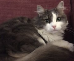Kirsten er en liten hunkatt ca 2 kg, hun er blanding av perser og norsk skogkatt, og har en liten rosa nese og lyse grønne øyne