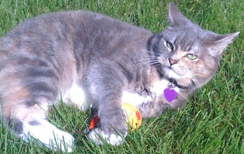 Nelly er en godt voksen hunnkatt med kort grå pels med små/svake flekker/striper av lysebrun og kvit. Hun er kvit på magen, brystet og litt rundt munnen. Hun er veldig tam og ikke særlig redd. Sist hadde hun på seg et grønnt bånd rundt halsen med navn og tlf nr, (kan være hun har tatt det av, ikke slik på bildet). Hun har en liten barbert flekk på halen og masse pels i nakken.
