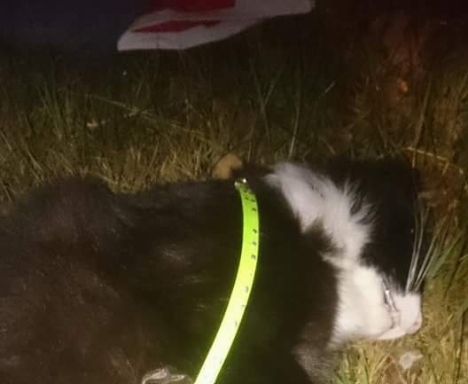 Den lå i bilveien, trolig påkjørt rundt 2130 tiden lørdagskveld. Flyttet den ned i veigrøften da jeg fant den. Den hadde ett grønt halsbånd med små diamantlignende ting på, halsbåndet var uten navn eller nummer.