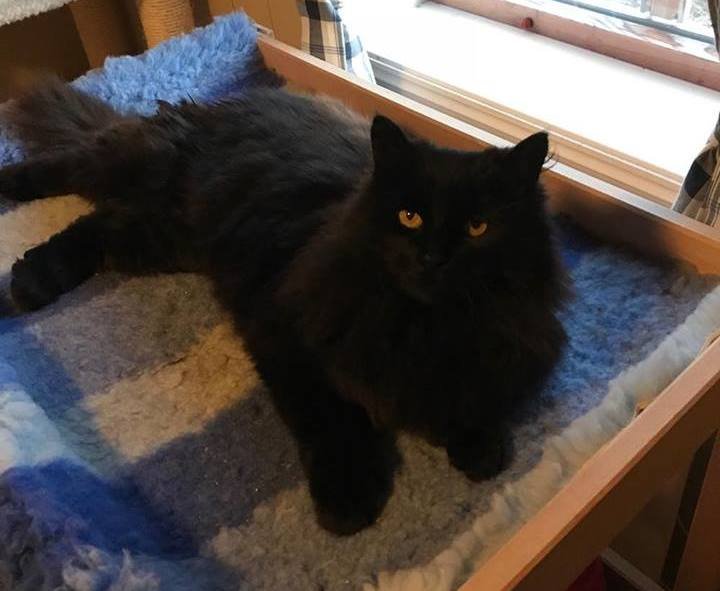 Hun er sort, men har nok brunskjær i pelsen, trolig mer om sommeren. Har ekstra klør på framlabbene. Tam, kjælen, men bestemt katt.