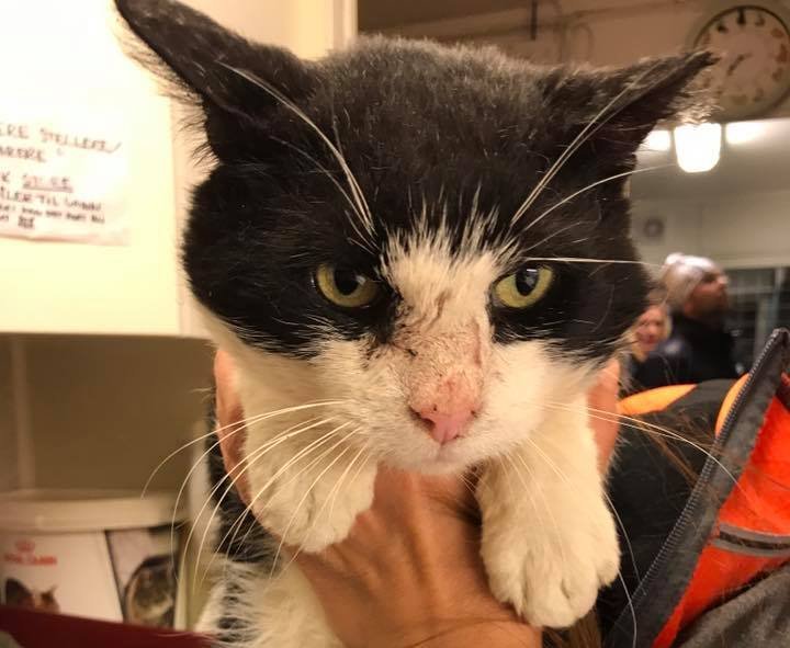Katten bærer preg av å ha gått ute lenge. Ble funnet i Grønnberg, Hommelvik