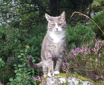 Katten ble sist sett fredag morgen kl 8 utforbi huset den tilhører. Rudolf har ikke for vane å vandre. Den er inne hver natt. Han er en grå/hvit spraglet katt med klare hvite områder rundt snute, på hals og poter. Den har til tider blitt skremt av andre katter / rev / hjort etc. opp i trær, med opphold både en eller flere netter før funnet (kun i nærmiljøet). Og den gir ikke "særlig" med lyd fra seg utenom når den blir ropt "til". Han kan klatre opp et tre, men ikke ned (dessverre). Rudolf er en stille, men nysgjerrig katt på litt over 5 år.