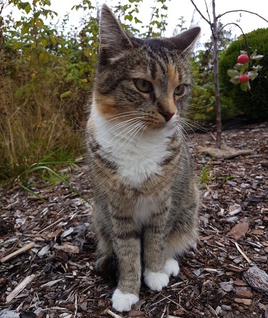 Pus blir ofte jaget bort av nabokatter. Vanligvis kommer hun hjem igjen etter en stund, men nå tror vi at hun ikke finner veien hjem. Hun gjemmer seg ofte under verandaer eller inni boder/garasjer.