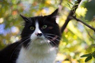 Mangler værhår over høyre øye og venstre hoggtann nede.