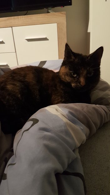 Hun er redd barn og fremmede. Har hatt besøk fra Kauto i 1 uke og ungen hennes klarte ikke la katten være i fred. Jeg var borte fredag og når jeg kom hjem sto døren åpen og katten var borte. Hva som har skjedd aner jeg ikke. Hun pleier alltid komme når jeg roper.