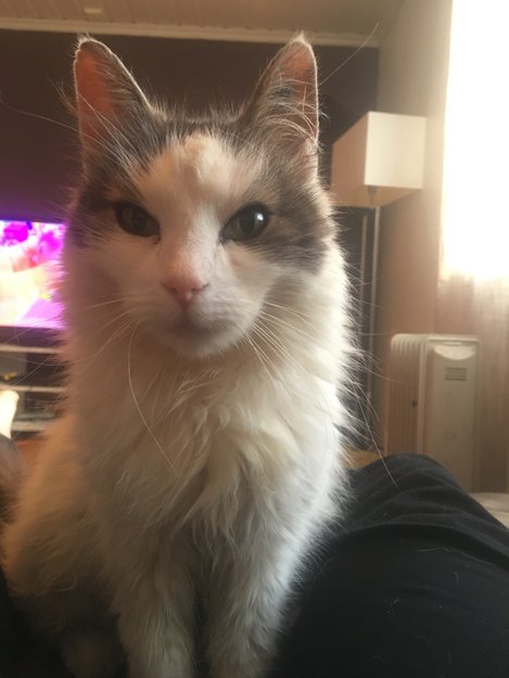 Hvit grå/svart hannkatt var savnet i Annet (Utland)
