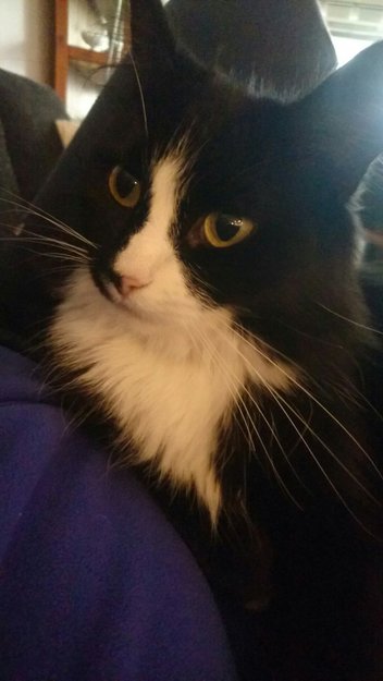 Hvis noen observerer en svart og hvit langhåret huskatt som er liten av vekst og virker sky/redd, så håper vi å få vite om dette.
