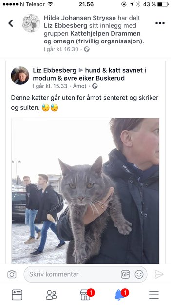 Eier er funnet. Oppholder seg ved Åmotsenteret. En uke har han ligget på rampa til vareleveranser. Utrolig tillitsfull og kontaktsøkende