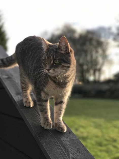 Zelda er ei sterilisert hunnkatt på 2år som liker å være ute, men ikke lenger en 4-5 timer om gangen, hun har egen kattedør som hun går inn og ut av. men har vært ute lenge nå. er bekymret