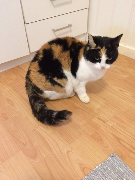 Sort orange hvit hunnkatt ble funnet i Modum