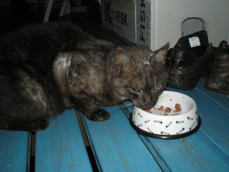 Dukket opp 28.juli og var ekstremt sulten. Har siden oppholdt seg rundt huset.