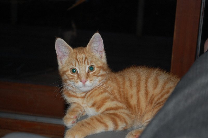 Tigerstripet oransje katt. Kortklipt liten del på bakhodet.