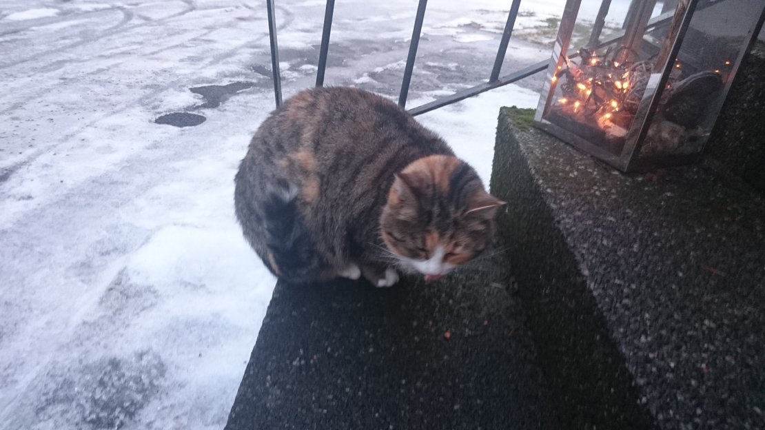 Katten har vandret rundt her i høst, nå har den slått seg med hos oss. Veldig tam og kosete katt.
