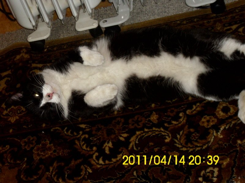 (Signament=beskrivelse av dyret)Svart og hvit med en prikk på nesen se på bildet .MAGEN= nesten som en Border collie eller lita ku hehe. UTEN HALSBÅND,HAN ER KOSETE,SNILL,OG BESTE KATT EVER FOR MEG.