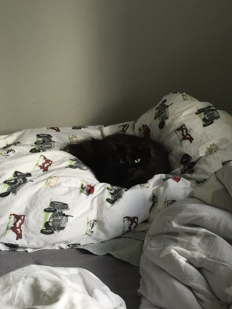 Hun kom hjem idag 4/1. Virker som hun har fått mat en annen plass, siden hun fortsatt er tykk og god 😊