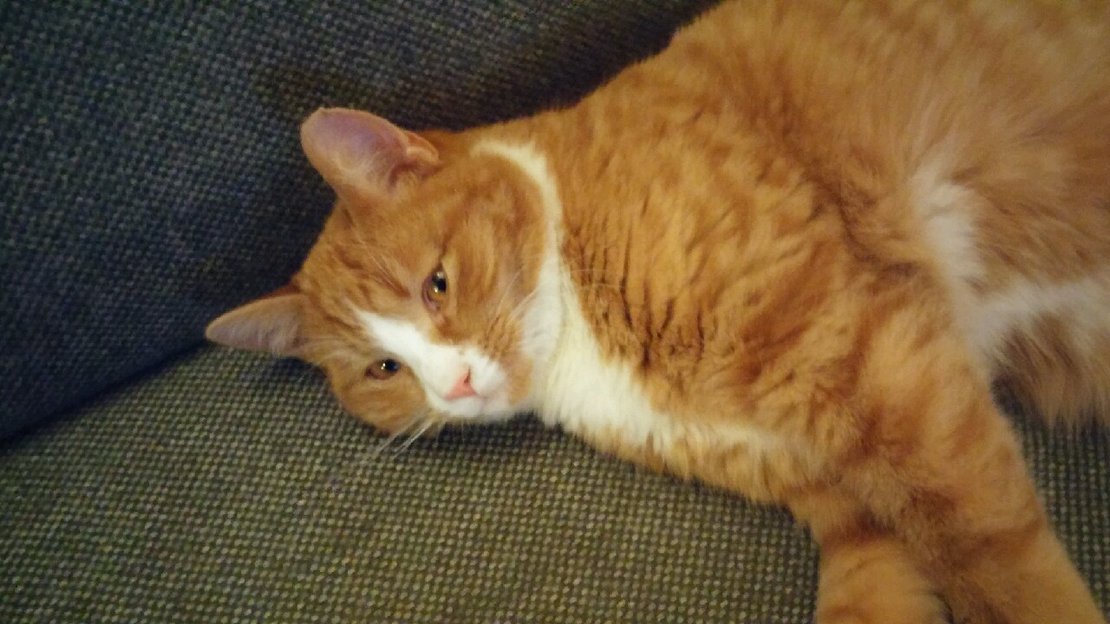 Rød oransje og hvit hannkatt ble funnet i Fet
