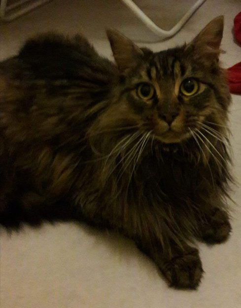 Eigar har meldt seg etter å ha sett annonse på lokal facebook-side. Katten hadde vore vekke ca 6 mnd, og vart funne ca 13 km frå heimen.