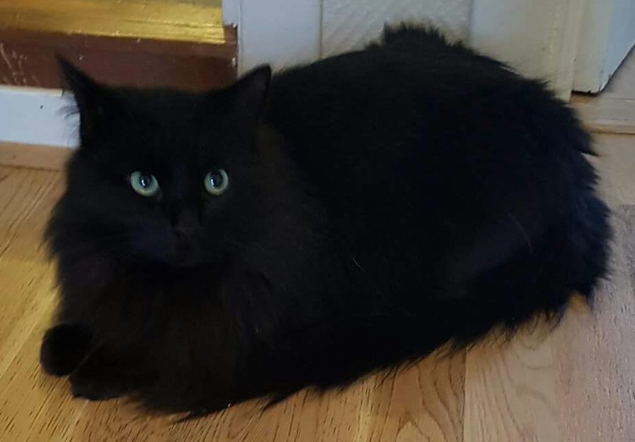 Sort langhåret blanding av skogskatt og Maine Coon.