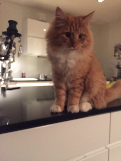 Han er veldig kosete, og kan ofte gå inn i garasje som står åpen.