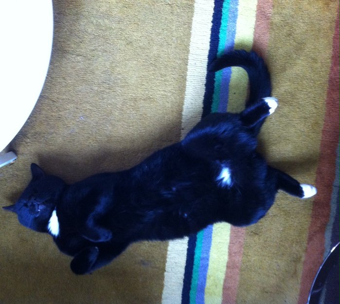 Massy kom akkurat hjem igjen, varm og god og luktet helt annerledes enn han pleier. Har nok vært inne og kost seg hos noen andre.