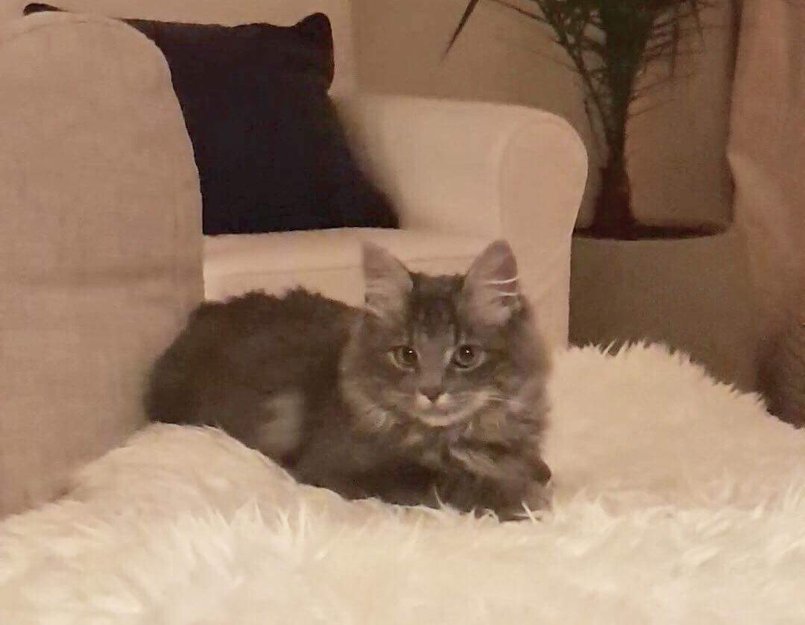Langhåret grå, lys under på magen . 7 mnd gammel
