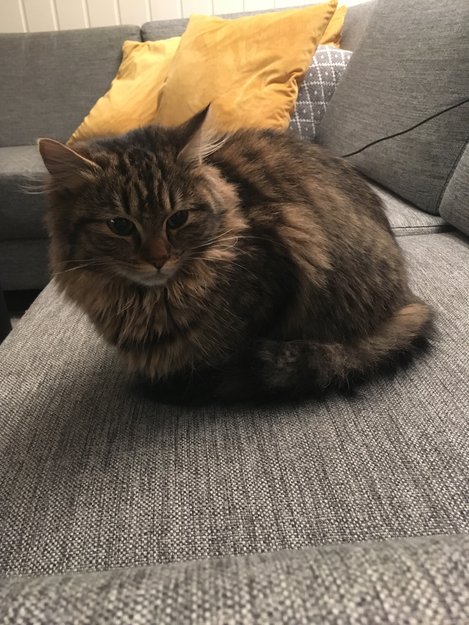 Kom klyvende en kattunge ut av kattehuset mitt, som majuer som en liten pus. Kjempe kosete.