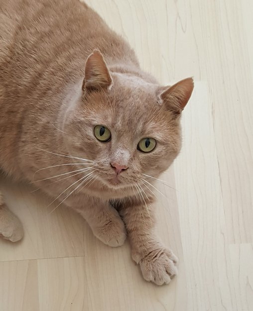 Katten dukket første gang opp i 2015 på Gan. Ble tatt inn i juni 2016 og fikk fjernet mange flått. Ble satt ut igjen og forsvant i noen mnd. Har dukket opp sporadisk. Da snøen og kulden kom forstod vi at han bodde under trappen vår, han lå ute i 15 minus grader. Ble så tatt inn.
