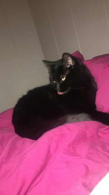 Ho e veldig kosete, å ho e litt sky mot nye folk. Ho har gule øyne. Ho e helt svart. Ho e vant til andre katte.
