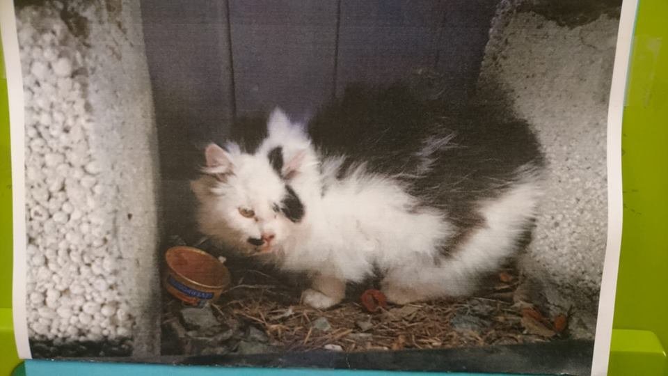 Funnet like ved Bunnpris i Skogn sentrum, fanget inn i dag 14.02.18. Tror denne har streifet rundt hos oss også tidligere i vinter. Den har tydeligvis vært ute en stund da det er mye tover i pelsen. Den er ikke helt vill så den må ha vært i kontakt med folk. Redd og nervøs nå, men får klappe den forsiktig.