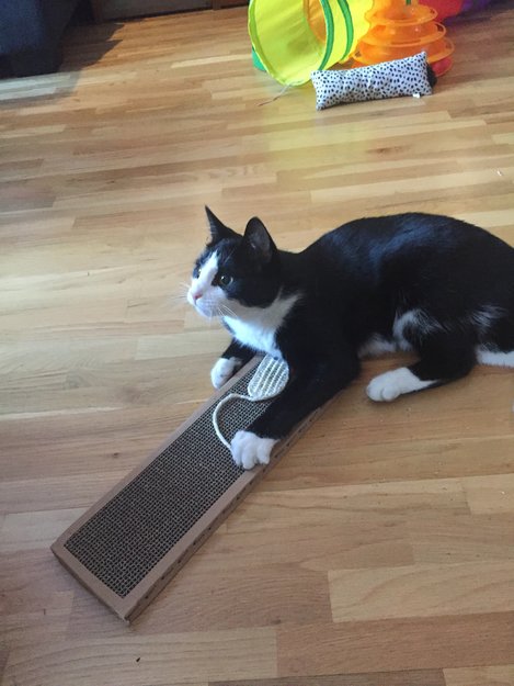 En dame hadde holdt på å kjøre på han i garasjen sin, så han har vært innestengt der nede. Han var tynn, veldig møkkete og luktet olje. Sulten og utsultet på kos og nærhet.