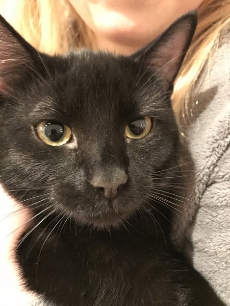 Luna er nesten helt sort, har kun en liten hvit flekk på brystet.