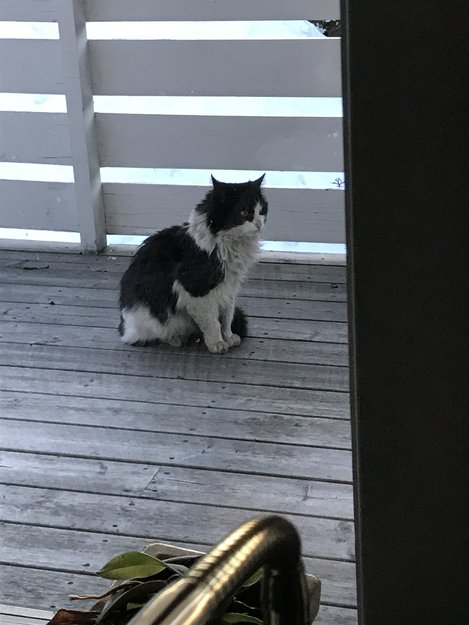 Noen som kjenner til denne katten her? Er nok en hannkatt da han kommer og hyler etter min katt,men syntes han ser litt tufs ut nå, skitten med litt floker i pelsen! Ser han noen ganger krysse Kjeppestadveien så mulig han hører til på den siden av toglinja? Han er mye på besøk her i Leikvollen!