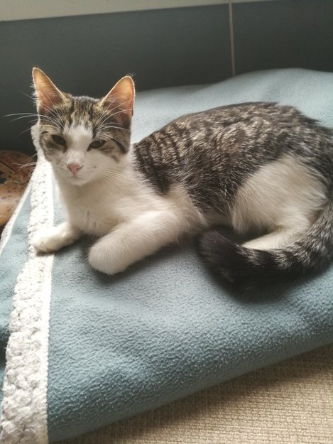 Hvit med grå spragle hannkatt ble funnet i Larvik